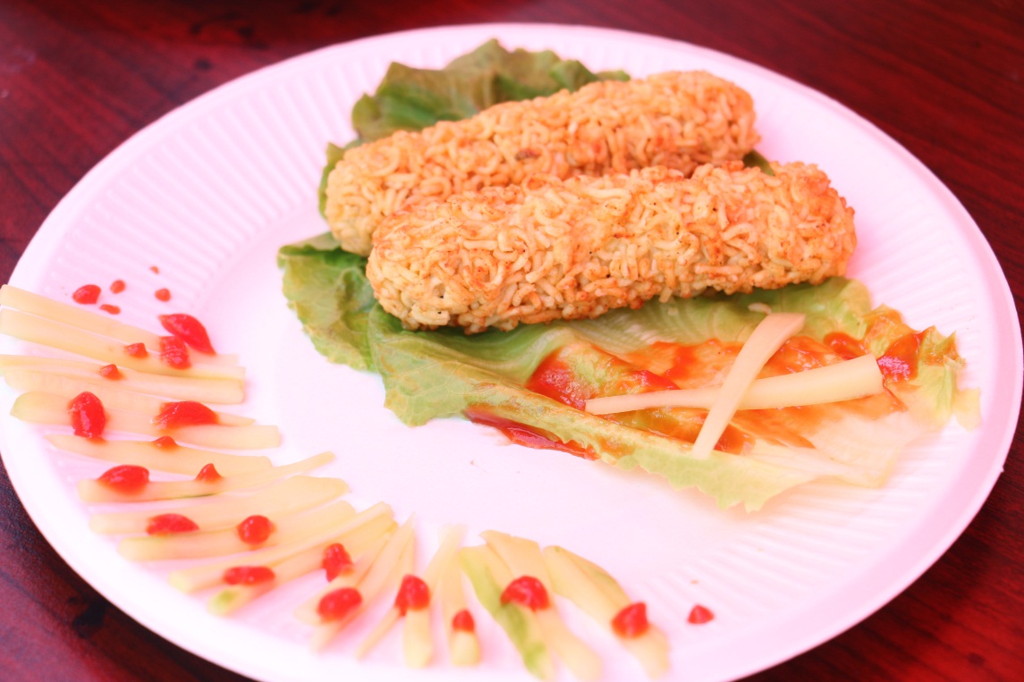 这次比赛参与评分的共有9个产品,最后由丁克芳女士宣布晋级的6个产品,分别是名为“妙脆筒”、“咖喱黄金脆脆饼”、“怡口伊面”、“日出”、“刚刚好”、“不良寿司面”的创新产品。并呼吁同学们尝试做出不一样的方便面,发挥创意。
