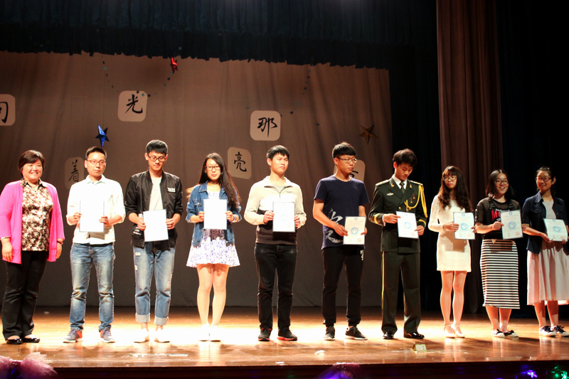 获奖代表“双创之星”刘耘莉分享了以她为主要负责人的“天生一队”小组参加2016年度上海市“创青春”大学生创业大赛并荣获金奖的经历,点出“坚持梦想,勇于创新”是一路走来陪伴自身的关键词;“孝爱之星”杨泽华身着军装讲述了入伍当兵的故事,表示“祖国的需要是我们的荣耀,男儿保家卫国无尚光荣”;“公益之星”胡蝶娓娓道来自身投身公益事业的点点滴滴,喊出“中国的公益梦需要青年的力量”;“明星班集体”获奖者生工132班团支书王梦蕊展示了全班同学如何齐心协力将班级建设成了充满活力、互助友爱、同进步、共成长的温馨之家。