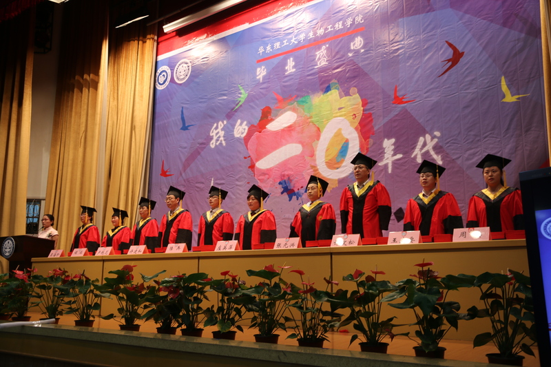 6月20日,生物工程学院2016届学生毕业盛典在逸夫楼报告厅举行。毕业盛典分红毯仪式、毕业典礼及毕业晚会三部分。生工学院院长庄英萍、党委书记陆兵,院学位委员会主任张元兴,院学位委员会委员许建和、谭文松、储炬,副院长卢艳花、王启要,应用生物学系系主任吴海珍、食品科学与工程系系主任周英等为毕业生颁发证书及拨穗正冠。此外,2016届全体毕业生、2012级各班班导师、全体思政辅导员、学院专业教师代表、学生家长代表欢聚一堂,共同见证了这一庄严的时刻。毕业典礼由院党委副书记吴蓉主持。