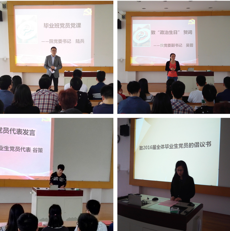 日前,生工学院举行了一场别开生面的党员政治生日活动,以严肃而又温馨的形式提醒毕业生党员牢记政治生日,明确责任使命,并由此正式开启了2016届本科毕业生党员离校教育工作。学院党委书记陆兵、副书记吴蓉,2012级辅导员王超和全体毕业生党员出席了活动。
