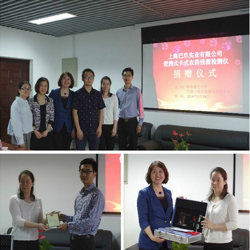 5月26日下午,上海巴玖实业有限公司便携式卡式农药残留检测仪捐赠仪式,在奉贤校区实验七楼613室举行。上海巴玖实业有限公司经理张鹏、李翠平,上海市慈善基金会募捐部副部长陈晓菲、处置部副部长陆双龙,PornZog