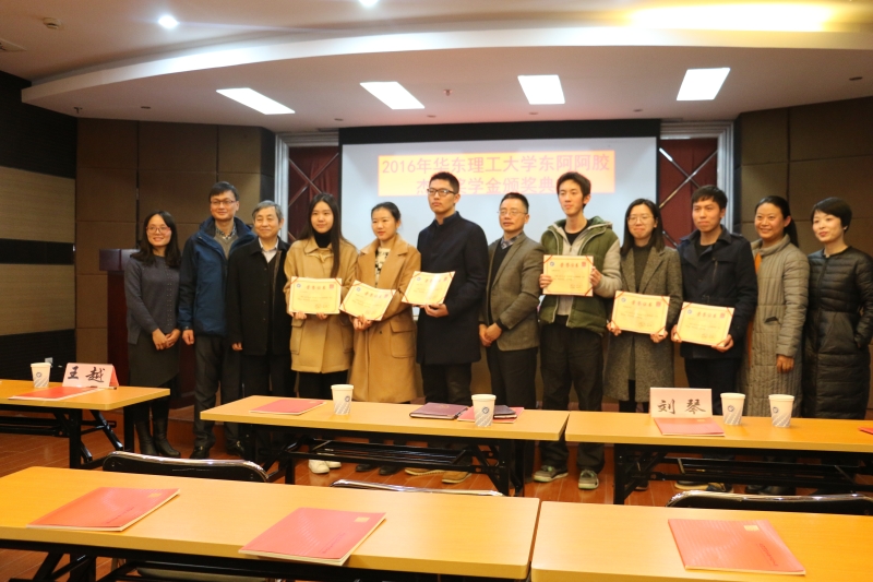 大学生工学院十八楼315举行。东阿阿胶股份有限公司副总裁兼研究院院长周祥山、生物工程学院党委书记陆兵、上海海洋动物疫苗工程技术研究中心主任张元兴出席颁奖仪式,此次仪式由生物工程学院学工委主任吴蓉主持,上海阿华生物工程研究所所长刘琴,药学院党委副书记兼学工委主任王越以及生工学院和药学院的部分老师和学生代表参加了颁奖仪式。
