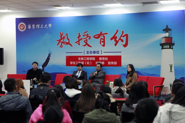 3月14日晚,由校教务处主办、生工学院承办的“教授有约”活动在奉贤校区图文信息中心603室举办,邀请全国优秀科技工作者、国家重点学科——生物化工学科带头人、鲁华生物技术研究所所长魏东芝教授,国家教学名师培育团队成员王玮副教授,以及生物工程学院院长助理、学工委主任吴蓉老师担任主讲嘉宾。生工学院副院长王启要担任主持。