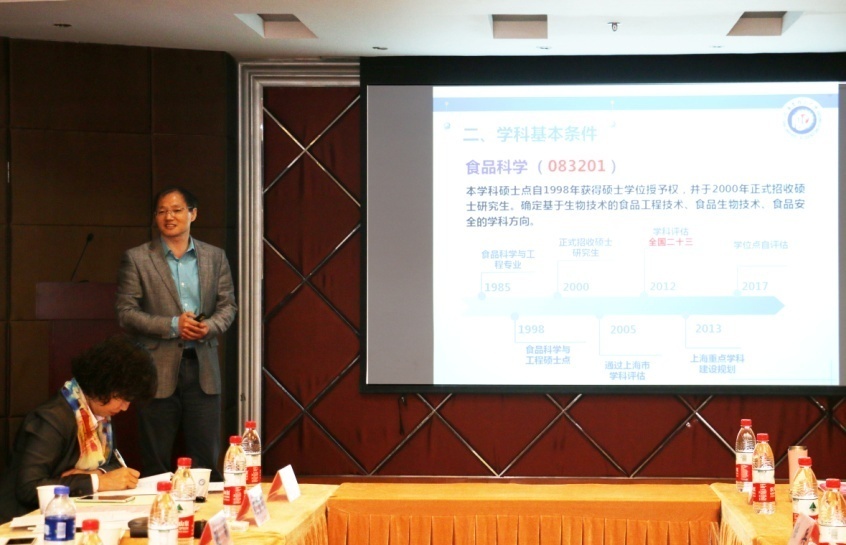 华中农业大学生命科学技术学院院长、国务院学学位委员会生物学学科评议组成员王学路教授,上海海洋大学食品科学学院院长、国务院学位委员会食品科学与工程学科评议组成员谢晶教授,上海交通大学生命科学技术学院常务副院长冯雁教授,江南大学食品学院张晓鸣教授,华东师范大学生命科学学院钱旻教授,上海交通大学农业与生物学院史贤明教授,复旦大学生命科学学院吕红教授作为评估专家参加了本次自评估会议。校学科与专业发展规划处刘涛副处长、冉博老师、生物工程学院党委书记陆兵、院长庄英萍、副院长卢艳花、学位点负责人叶邦策教授、储炬教授以及各参评学位点导师参加了会议。