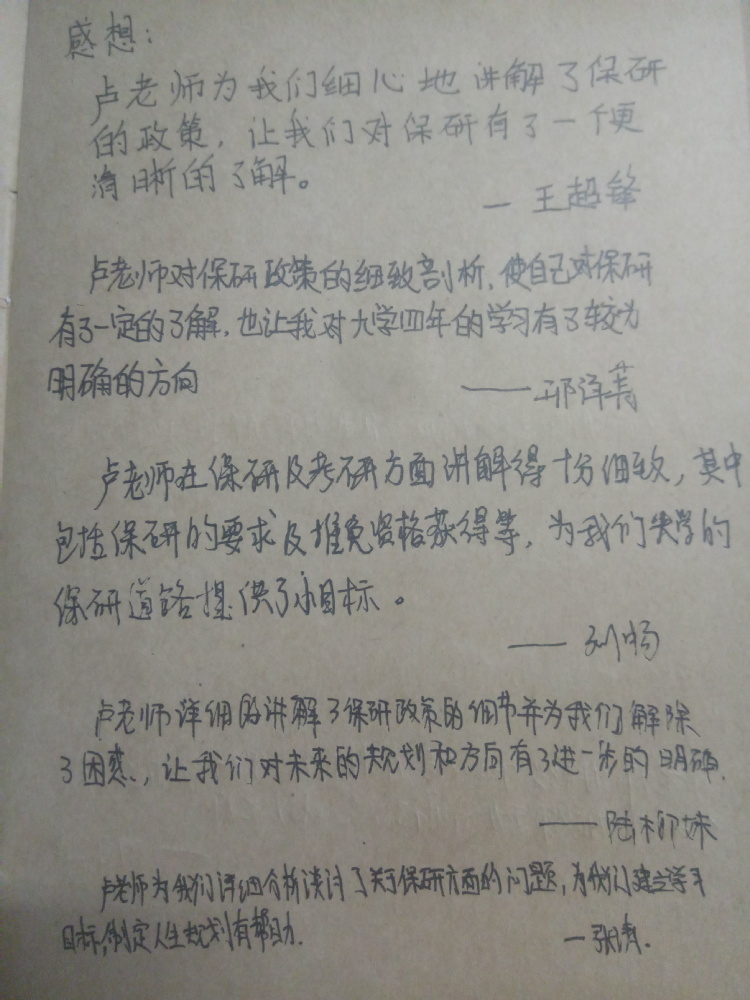 卢艳花教授为同学们介绍了近年来的推免政策,并从名额分配、候选人的产生、面试的方式、成绩的计算、填报志愿、导师选择等环节详细解读了推免流程,以便大家对推免工作有整体的认识。卢艳花还详细为同学们介绍了学院的一级学科博士点、二级博士点和硕士点的学科特色、师资力量以及相应的招生类别。她重点针对2014年开始的推免名额不分“学术硕士”和“专业硕士”,不限定“保内”和“保外”的推免政策的调整,给出了中肯的建议,希望能帮助同学们走出盲目追求“保外”、贸然选择的误区,建议同学们读研更应该看重学科专业的实力和影响力,希望能帮助同学们规避新政策下“自由保外”的陷阱。