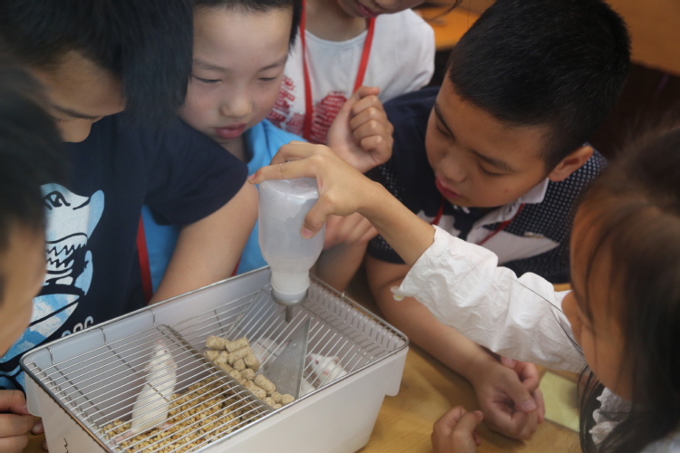 孩子们首先认真地观看了实验室的介绍短片,在提问环节中踊跃举手回答,会场气氛活跃,互动热烈。然后,他们见到了生物学实验室里的各种规格的“枪”和大小各异的各类离心管,并亲手拿起了生物学实验室里的“枪”给离心管里加点料。孩子们还见到了可爱的实验小鼠,经过讲解,他们知道了实验鼠有大鼠、小鼠,还有通过基因工程突变的模型鼠。