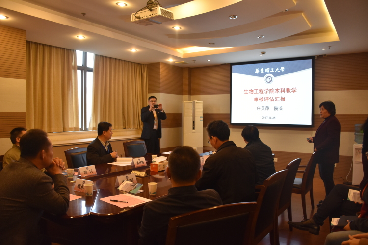 庄英萍院长首先简要汇报了生物工程学院的本科教学情况,围绕“6+1”质量保障体系,庄院长重点从“办学定位与目标”,“师资队伍”,“教学资源”,“培养过程”,“质量保障”和“学生发展”等方面介绍了生物工程学院的本科教学情况,并介绍了生工学院的创新教育教学特色项目。
