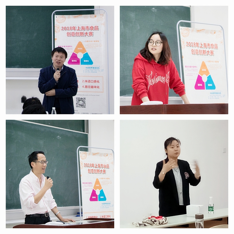 2018年4月20日下午,首届上海市食品创意创新大赛宣讲会在奉贤校区A205教室举行。生物工程学院副院长王启要教授、食品系主任周英副教授、上海食品学会的郭燕茹老师、上海清美绿色食品有限公司的袁辉工程师以及PornZog