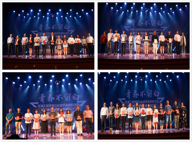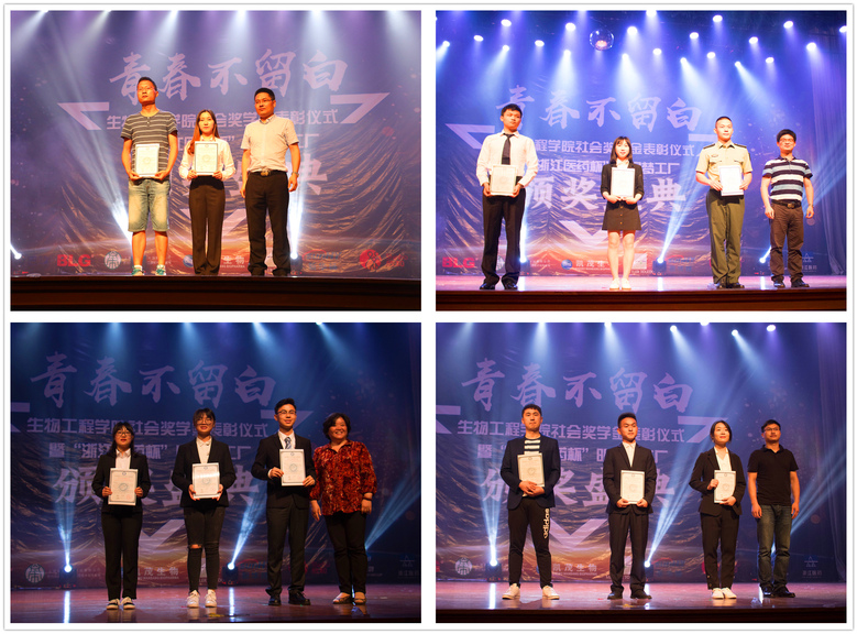 6月12日晚,生物工程学院2017—2018学年社会奖学金表彰仪式暨“浙江医药杯”明星梦工厂颁奖盛典于在奉贤校区大学生活动中心剧场举办。现场向安琪酵母英才奖、BLG奖学金、巴玖奖学金、格燊奖学金、凯茂生物奖学金、梅特勒-托利多过程分析奖学金、新华扬奖学金、欣和奖学奖教金9个社会奖学金的103位社会奖学金获得者颁发了证书,宣布了“蔚蓝生物杯”大学生学术科技创新竞赛的10个立项项目,并表彰了生工之星获奖者与提名者、明星班集体获奖班级与提名班级。