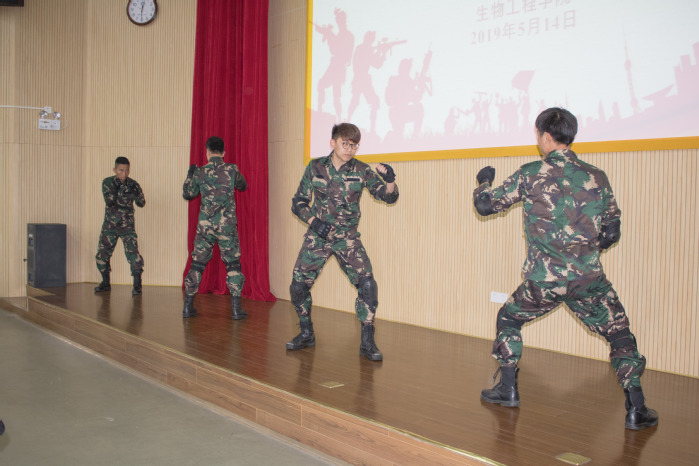 会上,同学们观看了2019年上海市征兵宣传片,了解近年上海市征兵工作现状及优秀榜样典型。5名退伍学生向同学们展示了精彩的军体操演练,并邀请两名学生上台体验部队日常训练,体会战友间相互信任、相互扶持的中国军人精神。