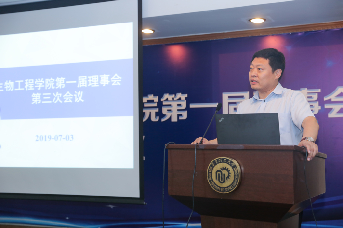 7月3日下午,生物工程学院第一届理事会第三次会议在逸夫楼演讲厅召开。来自天方药业、浙江医药、恒顺醋业、青岛蔚蓝生物等20余家理事单位的理事或理事代表,生物工程学院党委书记陆兵、院长庄英萍等学院领导和学院其他党政领导、学院教师共计60余人出席本次理事会。