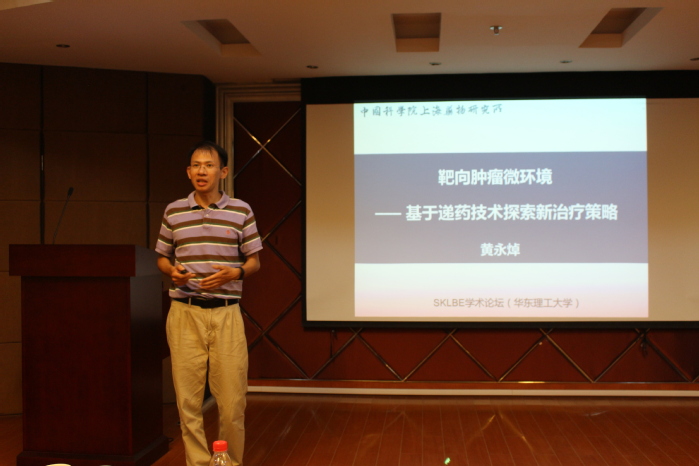 大学生物反应器工程国家重点实验室邀请,中国科学院上海药物所研究组长黄永焯研究员来校访问,并开展了“靶向肿瘤微环境的递药及治疗策略”的主题讲座。此次报告会由赵黎明教授主持,生物反应器工程国家重点实验室主任张立新教授应邀出席了本次报告交流会。