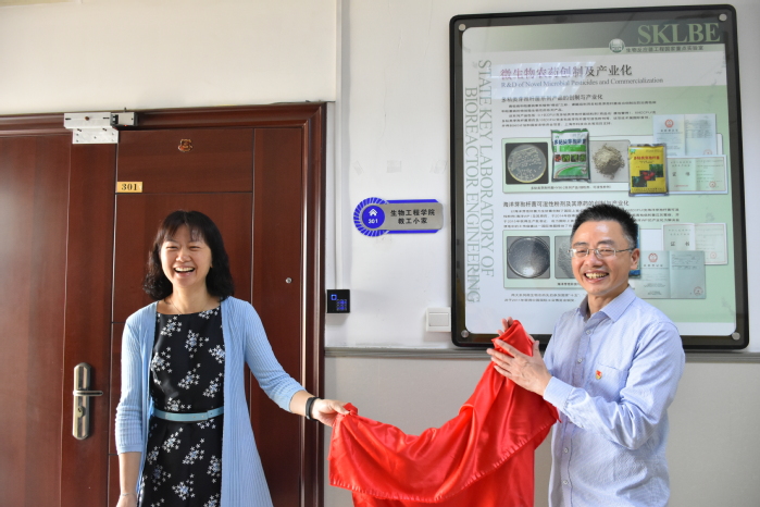 在新中国成立70周年生日即将来临之际,生物工程学院工会举办了新教工小家装修落成仪式。校工会常务副主席朱姝与生物工程学院党委书记陆兵共同为生工学院新教工小家揭牌。