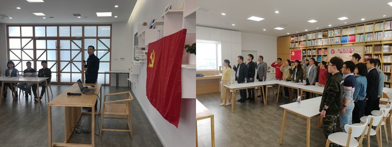 联合二教工党支部书记蔡孟浩主持了本次活动,介绍了“不忘初心、牢记使命”主题教育的重要意义,“支部建在连队”的历史由来及重要性,强调了教师与学生支部围绕团队共建的优势与愿景。随后,支部党员在本次活动特邀嘉宾生工学院党委副书记陆兵的带领下重温了入党誓词,为本次主题教育活动拉开了帷幕。