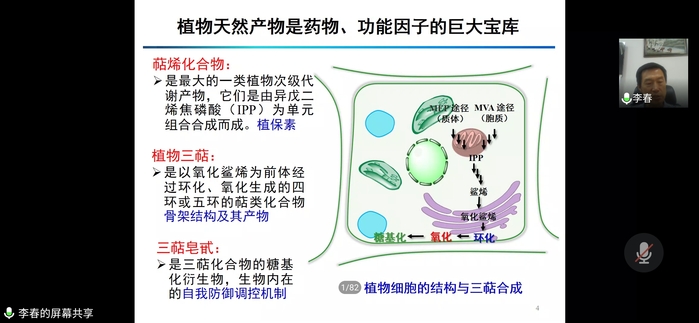 讲座中,李春教授介绍了课题组的研究方向和主要研究内容,并就萜烯类化合物生物转化和微生物合成做了详细的分享。李教授首先介绍了我国甘草资源的变迁和甘草酸及其衍生物的功效和需求,之后详细讲述了甘草酸衍生物的获取方式、酶法转化合成甘草衍生物以及如何在酿酒酵母中实现产物的全合成,提出了构建高效微生物细胞工厂的共性问题并给出了独到见解。尤其是李春教授团队多年来深入新疆甘草种植地、搭建移动实验室、潜心研究的经历让人感动。聆听完精彩的讲座后,师生交流环节气氛十分热烈。PornZog
