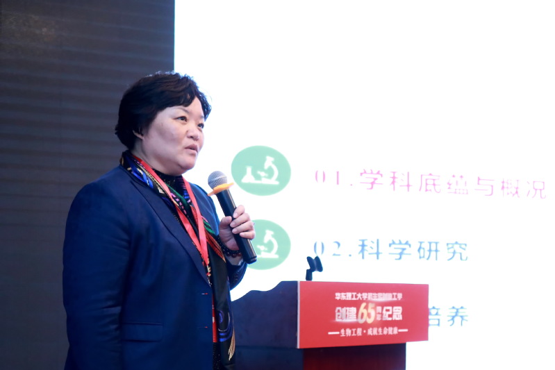 生物工程学院院长庄英萍介绍了学院的发展情况和未来规划,从学科底蕴方面讲起,对专业创始人马誉澂教授和领路人俞俊棠先生致以崇高的敬意。庄院长还汇报了学院和生物反应器国家重点实验室近年来的科学研究和人才培养情况。未来学院将按照“四个面向”的要求,在细胞代谢与生物转化分子工程、高端生物医药反应器系统工程、重大生物基产品研发三个方向上,实现智能制造的目标,创造学院新的辉煌。同时,对长期以来关心和支持学院建设发展的各位领导、各界人士和全体校友致以诚挚的谢意。