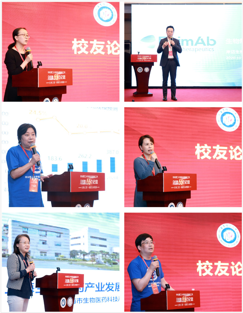 当天下午还举行了校友论坛,由生物工程学院副院长郁惠蕾主持。校友上海岸迈生物科技有限公司董事长吴辰冰、天俱时工程科技集团有限公司副总裁兼生物医药事业部董事长丁之洁、上海恒瑞医药有限公司生物药部执行总监应华、上海市生物医药科技产业促进中心总工程师唐军和复旦大学教授张锋等和大家畅谈了生物工程行业的发展和未来的趋势,分享了自己的工作学习经历和收获。参会的其他校友也踊跃发言,表示校友与学院根脉相连、同心同德,会用共同的行动和集体的力量回报恩师的哺育、学校的滋养。