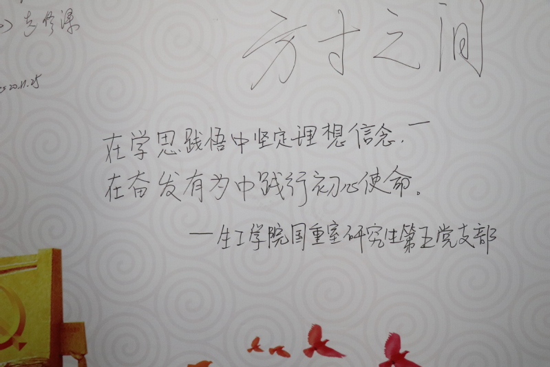 集邮巡展结束后,支部在留言墙上留言并合影留念,张雅敬同志对大家说到:“此次巡展帮助我们回顾了我党的光辉历史、艰苦岁月,小小的邮票承载着大大的时代精神,值得我们每一位党员去学习体悟。通过此次四史学习,广大党员应当以史为鉴,把握现在,坚定自己的理想信念,矢志拼搏奋斗,努力为实现两个一百年奋斗目标、实现中华民族伟大复兴的中国梦贡献智慧和力量。
