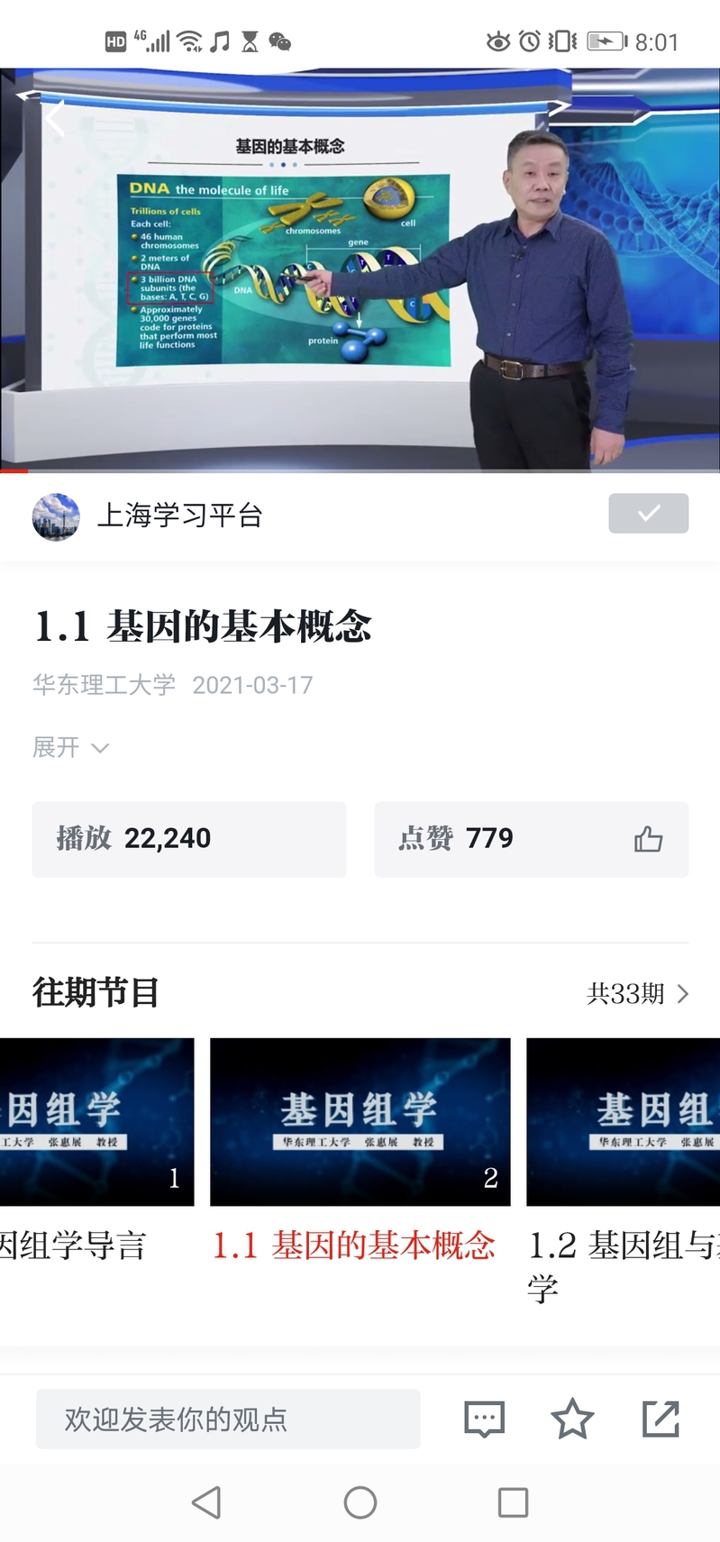 生物工程学院张惠展教授的上海市精品课程《基因组学》在中共中央宣传部“学习强国”平台正式上线,上线短短数日,播放数万次,点赞上千。
