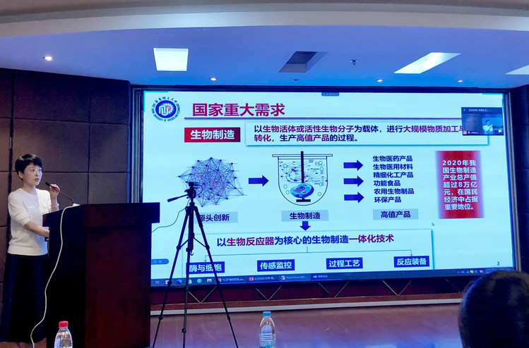 生物工程学院院长庄英萍致辞,代表学院对与会专家学者和海内外青年才俊表示欢迎和感谢,她表示生工学院非常重视发展智能生物制造、创新人才引进和培养。生物反应器工程国家重点实验室主任张立新、副主任刘琴、主任助理郑高伟分别作了题为“国之重器,您的机遇”、“华理生物制造——邀你共同打造国家战略科技力量”、“高性能酶催化剂的创制与应用研究”的报告,详细介绍了国重室的整体情况、优势方向和代表性研究成果。