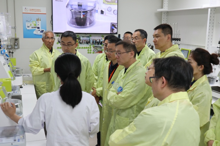 图片说明:校友们参观在建状态的细胞工厂区域