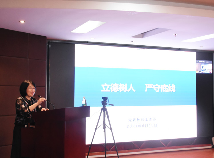最后,张雪芹作了题为“立德树人、严守底线”的专题报告,主要介绍了高校师德师风建设相关要求、师德失范处理规定和几个警示案例等内容。张雪芹详细解读了《新时代高校教师职业行为十项准则》,并重点分享了师德失范警示案例,希望教师们严守教师职业道德规范,立德树人、以德立身、以德立学、以德施教。报告内容丰富,参会教师纷纷表示此次师德师风教育培训会议受益匪浅,为以后的教育教学活动提供了有力支撑。