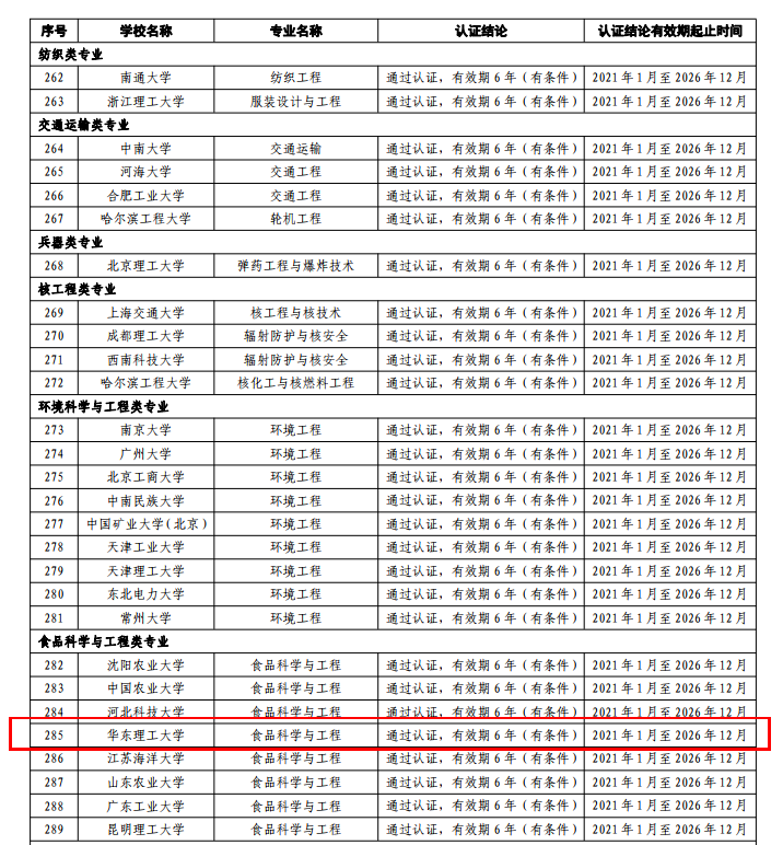 大学食品科学与工程专业经过向协会提出认证申请、通过认证自评估报告审核,完成专家组进校现场考查、结论审议等多个环节,最终顺利通过本次认证,有效期6年。