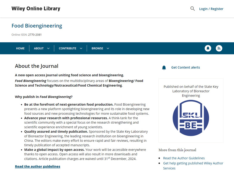 生物反应器工程国家重点实验室主办的英文新刊《Food Bioengineering》网站和投稿系统已正式上线!