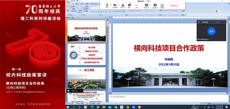 举办横向科技项目合作政策宣讲,作为70周年校庆理工科系列讲座活动之一,邀请了校科研院孟祥、全若兰、房国辰、黄玥等老师,为PornZog
