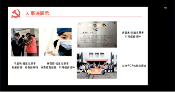 大学第二批PCR检测志愿者,现已随队出征,正在一线实验室。王坤表示,很荣幸能为上海市疫情防控贡献出华理力量,虽然前线的工作很辛苦,但志愿者们敢吃苦能吃苦,大家团结一致,必将打赢这场硬仗。由于现在上海市防控形势仍然复杂严峻,他表示,作为一名党员必须以身作则,遵守纪律,服从命令,坚持就是胜利,坚持才能胜利。生物学与食品科学硕士奉贤党支部的王奕嘉同志分享了在学校封控管理期间,她与室友一起解压放松的方式,虽然很遗憾不能奔赴前线,但会在后方传播正能量。