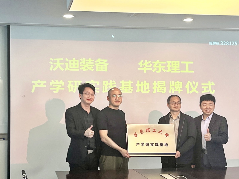 新近签约的实践基地挂牌,并就本科生认识实习、毕业实习等环节的培养工作进行了进一步的沟通、交流。参与本次挂牌仪式的还有沃迪智能装备有限公司董事长赵吉斌、总经理郑俊,生物工程学院教师刘卫兵。