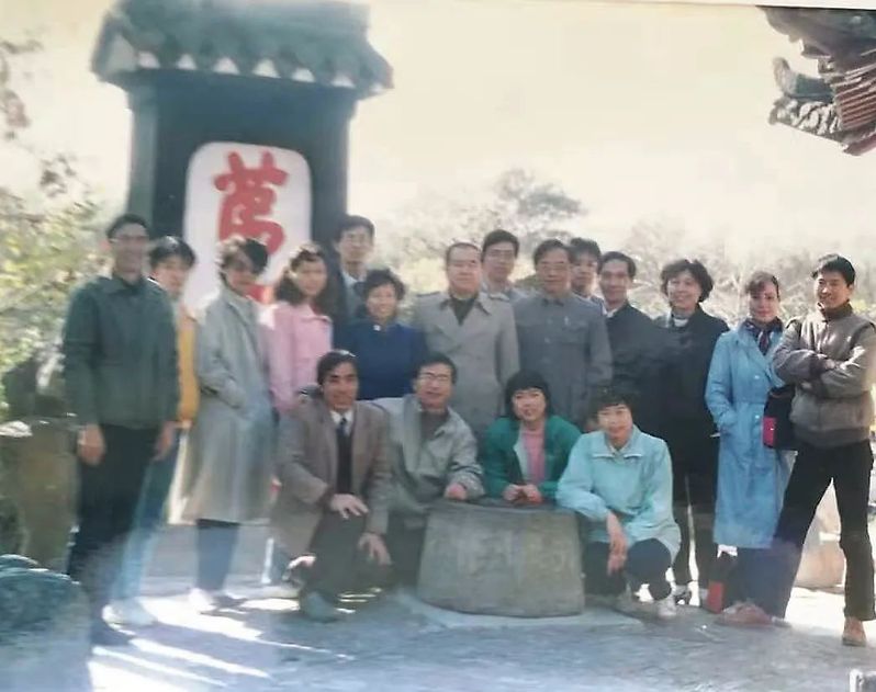 图片说明:1991年抗70班部分同学和方帼萍老师毕业10周年返校大礼堂合影