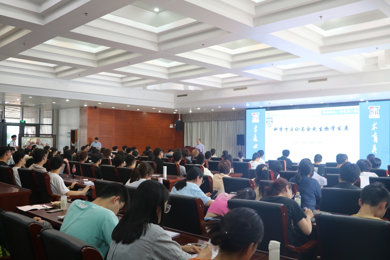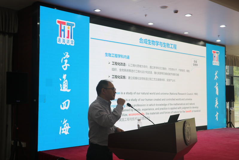 面向本科生打造的高端学术讲座“通海讲堂”第九十七期在奉贤校区通海厅正式开讲。生工学院院长叶邦策以“科学方法论与合成生物学发展”为题,将学术前沿与科学普及相结合,为学生揭开合成生物学的神秘面纱。讲座由生工学院副院长王启要主持。