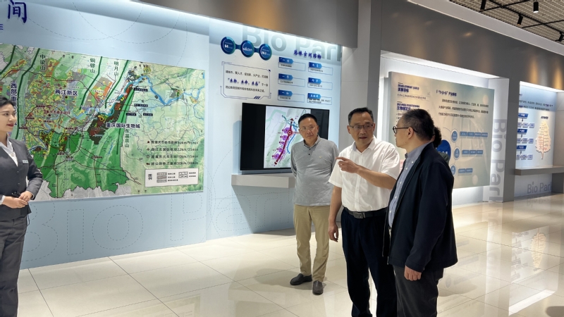 叶邦策一行与校友们应邀共同参观了重庆国际生物城展厅,了解生物城的发展历史及现状。