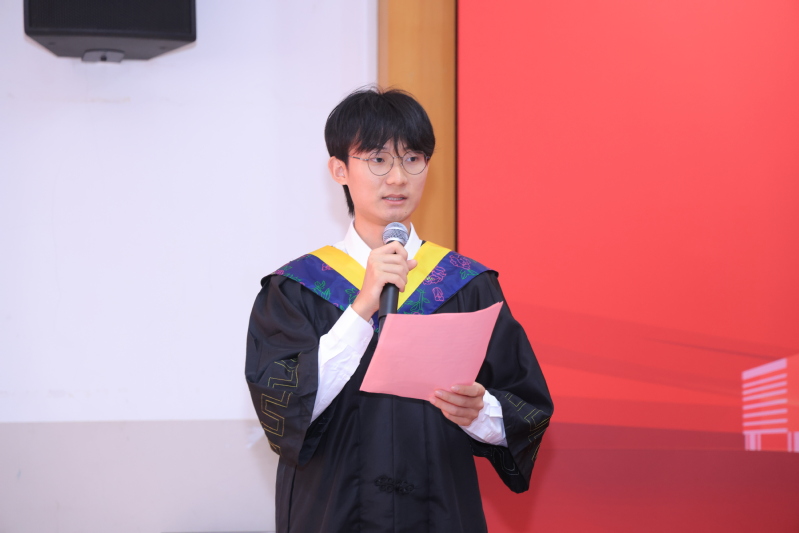 2024届生物工程专业史玉潇代表本科毕业生发言,他表示在华理、在生工学院的四年不仅积累了专业知识,更是培养了对世界的深度洞察力、独立自主的学习能力以及勇于担当的决断力。未来也将会继续保持好奇和热爱,继续奔赴下一段人生旅程,同时代表2024届本科生毕业生对学校和老师献上了诚挚的感谢与祝福!