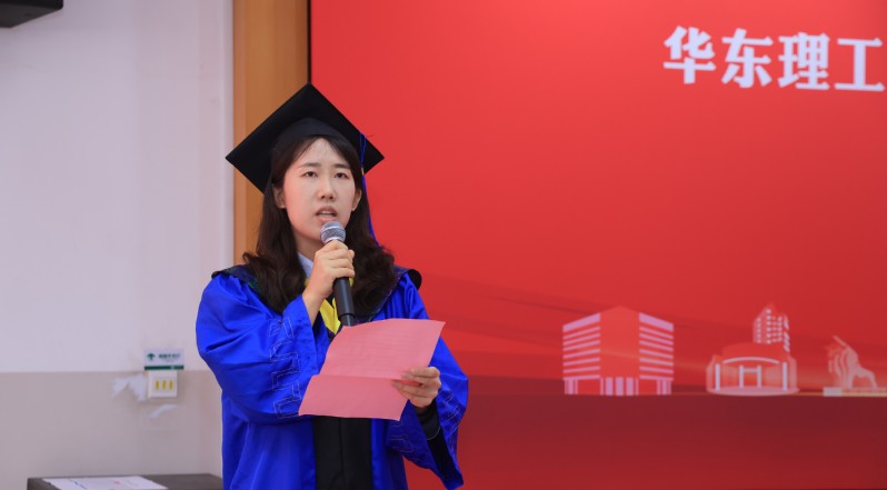 2024届生物与医药专业硕士研究生春玉代表研究生发言,她分享了在华理求学的七载年华,在导师的指导下也决心继续在科研道路上孜孜不倦前行。高春玉表示,未来将以实际行动让青春在奋斗中绽放,让梦想在拼搏中实现。而母校也永远是前行路上最坚定的力量源泉,深情表达了对老师们由衷的感谢以及对毕业同学们真诚的祝福。