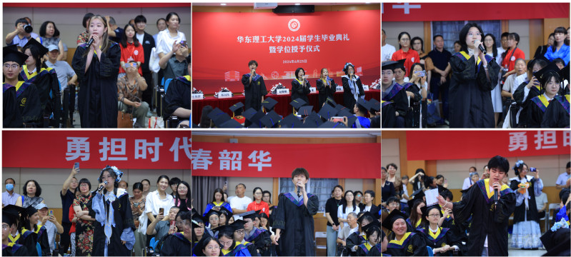 毕业典礼上,毕业生李含婧、沈文杰、李沛、张昊东、荣耀宇用歌声点燃现场气氛,用歌词道出不舍与祝愿。在欢快的歌声中,生物工程学院毕业典礼圆满结束。