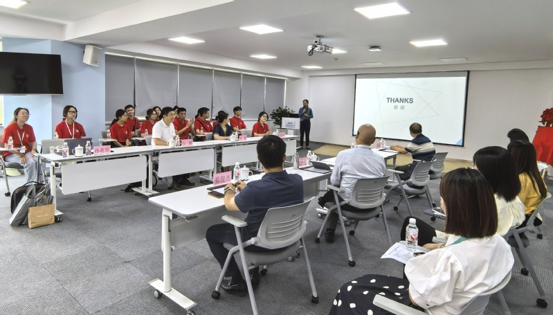 经过前期选拔共有13名本研学生通过此次暑期实习项目面试,在公司进行了为期三周的实习实践,并于8月9日的实习结业仪式上就实习期间的收获与感悟进行汇报。企业带教导师分享了自身的带教感触,对实习学生工作能力和专业技能做出肯定,各部门主管也就同学们的实习和答辩表现进行逐一点评。