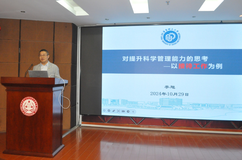10月29日,生物工程学院举办管理能力提升专题培训,学院党委副书记兼纪委书记李旭以“对提升科学管理能力的思考——以接待工作为例”为题,为参会人员带来一场实用性很强的讲座。