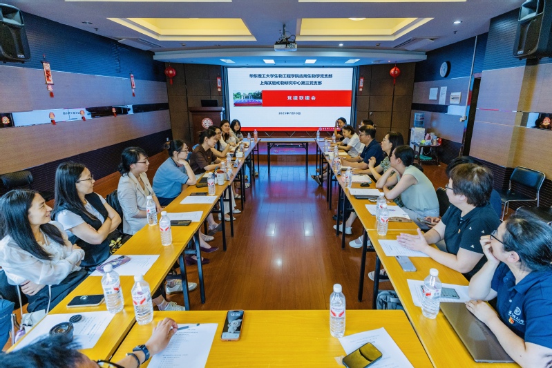 7月10日下午,生物工程学院应用生物学系党支部与上海实验动物研究中心第三党支部在实验十八楼 315 室举行联建交流活动。此次活动聚焦深化产学研融合、共建高质量实践平台,为双方合作注入新活力。生物工程学院党委书记程家高、上海实验动物研究中心党总支书记卢慧懿,以及双方党员骨干20余人出席。