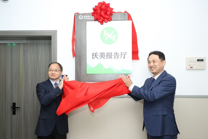 10 月 18 日下午,生物工程学院“沃美报告厅”揭牌仪式在实验十八楼举行。生物工程学院院长叶邦策与捐赠方代表——苏州沃美生物有限公司(以下简称“沃美生物”)总裁滕小锘共同出席仪式,并为“沃美报告厅”揭牌,这标志着双方全面构建战略合作关系。沃美生物研发副总经理张大鹤,生物工程学院党政班子成员代表、师生代表共同见证仪式。