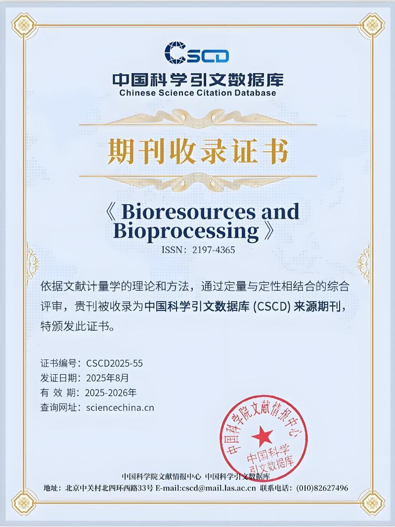 大学主办的学术期刊《生物资源与生物加工(英文)》(Bioresources and Bioprocessing,简称BIOB)连续获得两项重要荣誉,标志着期刊在国内外学术影响力方面取得新的突破。