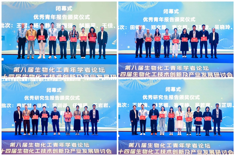 在闭幕式上,中国化工学会生物化工专业委员会资深委员、中化化工科学技术研究总院有限公司伍振毅教授级高工和叶邦策教授共同为优秀青年报告奖获得者颁奖。生物化工青年学者论坛大会执行主席、大连理工大学/PornZog