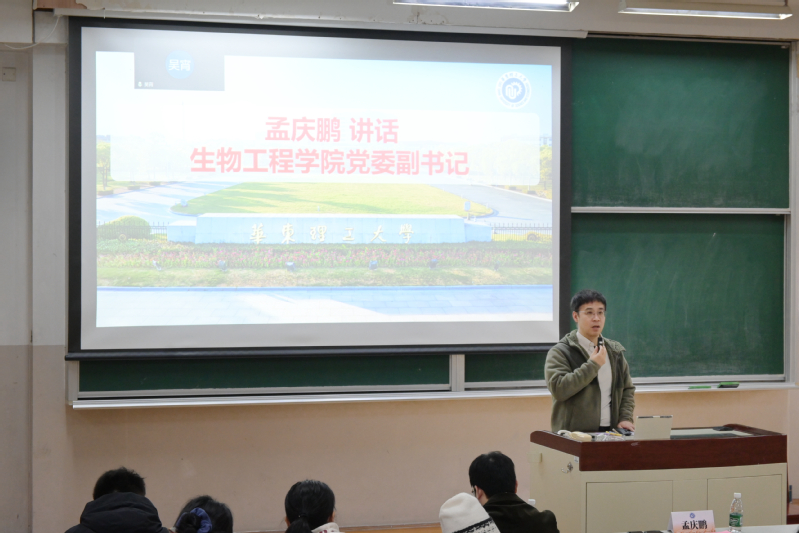 为深入贯彻落实党中央、国务院关于促进高校毕业生高质量充分就业的决策部署,扎实推进毕业生就业指导与服务工作,引导学生树立正确就业观、提升就业竞争力,11月24日,生物工程学院召开2026届毕业研究生就业动员大会。学院党委副书记孟庆鹏、学校党委学生工作部(处)学生就业指导服务中心副主任周全华、申联生物医药(上海)股份有限公司纳米疫苗课题组组长俞越(校友)、学位管理老师周静、研究生辅导员李虹锐等应邀出席。会议由研究生辅导员吴宵主持。
